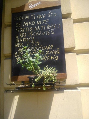 Evo ga. Napisano na drugom krilu istog onog kafea gdje prolaznicima, usput, žele ispunjenje njihovih želja