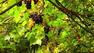 A onda, malo ponad tog mjesta obračuna sa zamišljanim, kad sam s dekicom krenula prostri je na travi i zavući se dublje, sklonjena od pogleda, između stabala, opazim jednu tankovijastu samoniklu granu vinove loze što se iz trave uspinjala sve do u krošnju onižeg stabla jabuke čvrsto isprepletena s njenim granama a među granjem i gustim lišćem jabuke i loze modrili su se grozdovi omalenih čvrstih bobica čiji su slatki sokovi još dozrijevali.