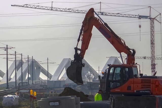Pristup je mostu zakrcen masinama, ali je centralni deo vec izgradjen i koristi se...