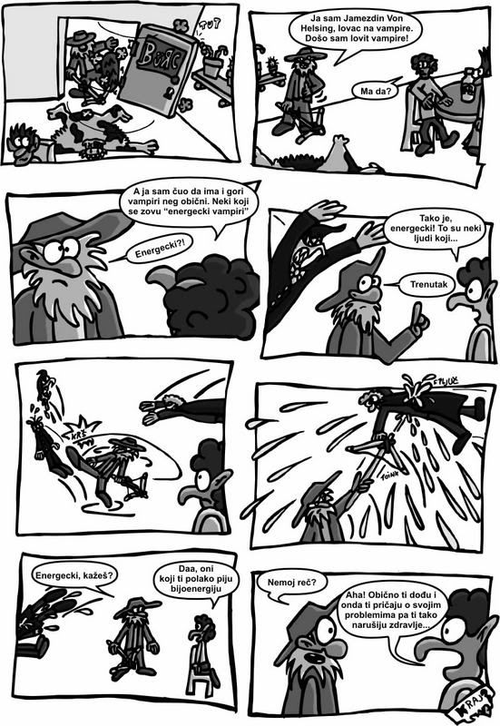 Napravio sam strip za crtani romani sou, samo ga jos treba skenirat i obradit i isprintat, pa sam iso potrazit proslogodisnji strip da vidim na sto je taj licio. Bio je debilan ko i ovogodisnji. Ako ne vjerujete, kliknite na slikicu pa ga procitajte sto sam to prosdle godine slao