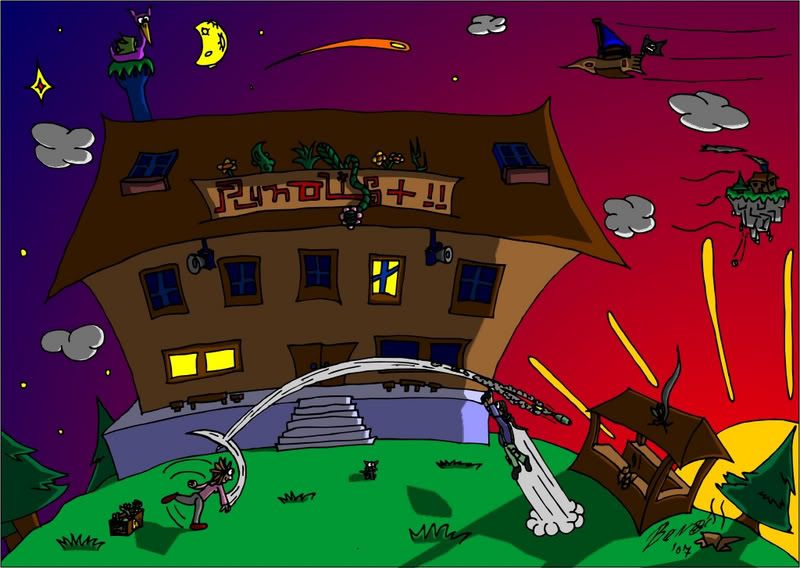 Inace, napisao sam i scenarij za strip (jedno 100tinjak slika) al sam onda otkrio order of the stick koj je bil na slicnu temu i cak upotrjebio par slicnih shtoseva pa sam nabrzinu odusto od cjele stvari.